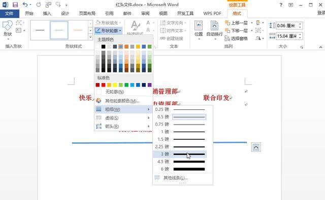 wps2016怎样做红头文件红杠怎么做