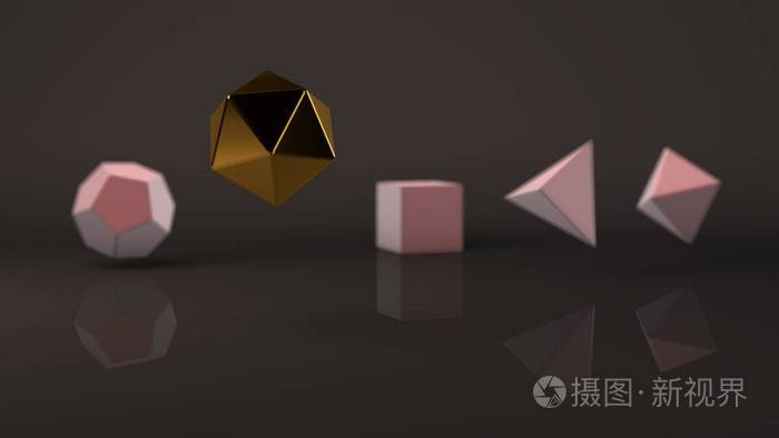 工作室中的一组几何形状 多面体 五个柏拉图式