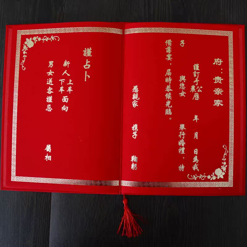 送日子婚书烫金内页结婚订婚期提亲定制打印