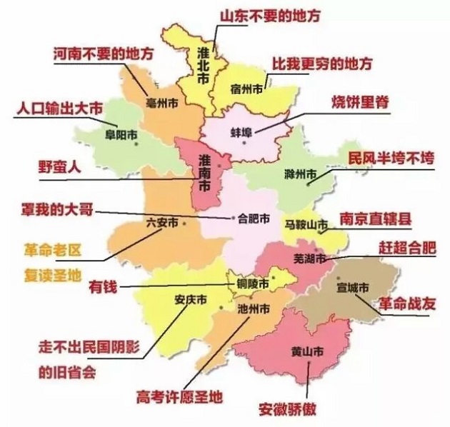 曝光!安徽各市人眼中的安徽地图!阜阳朋友