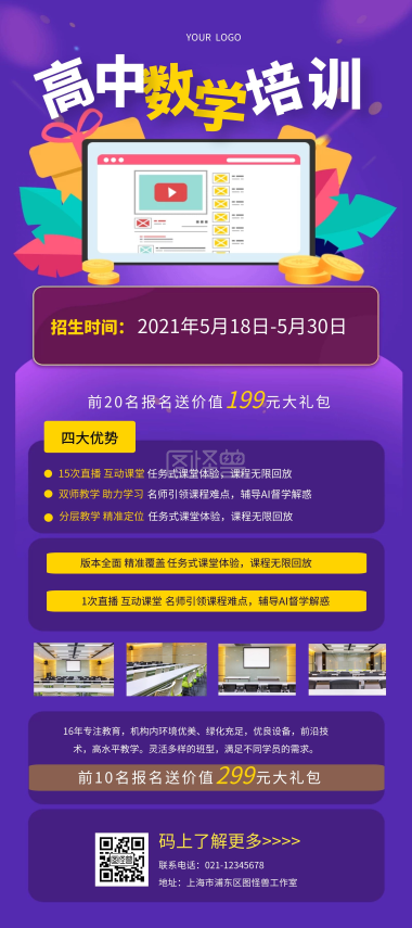 高中数学线上招生培训海报