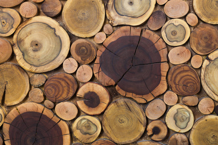 透视圆形木制,未油漆,固体,自然,生态,软色,棕色和黄色,裂纹树桩,背景树部分,年轮,不同大小,背景纹理。
