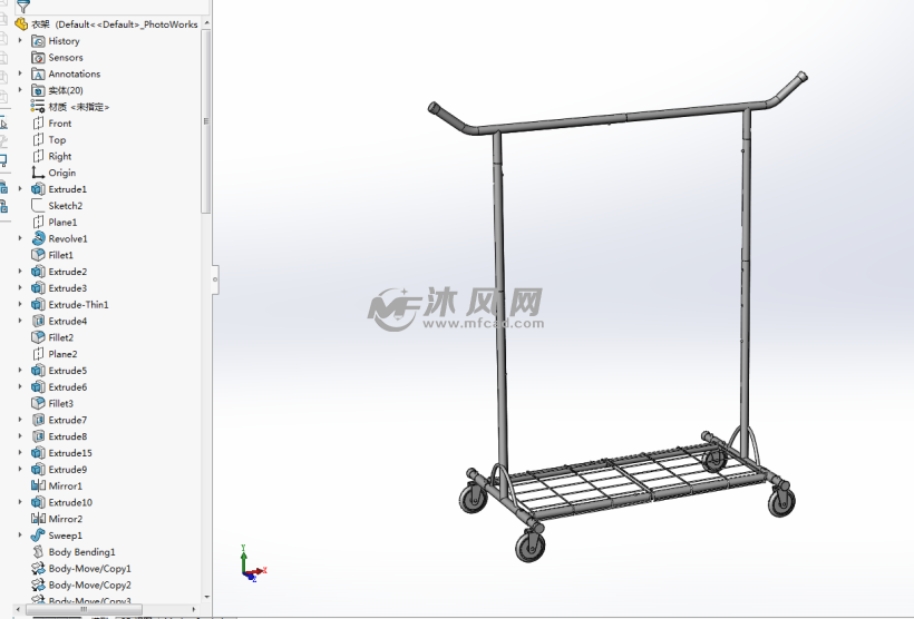 翼型晾衣架 带滑轮白色圆管可折叠晾衣架