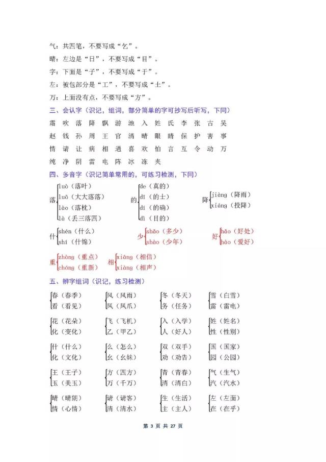 下册语文总复习资料(生字、组词、多音字