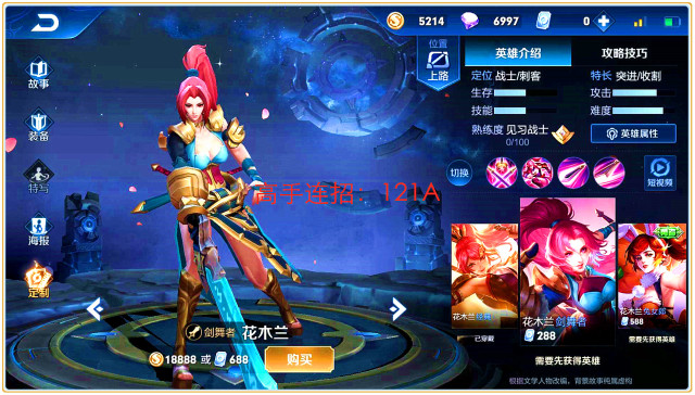 花木兰连招顺序,萌新:21A1,高手:121A,职业