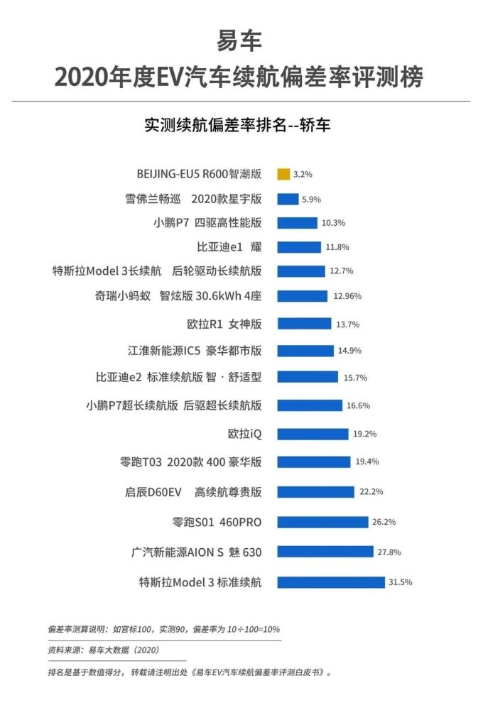 这下尴尬了 特斯拉续航偏差率排名垫底