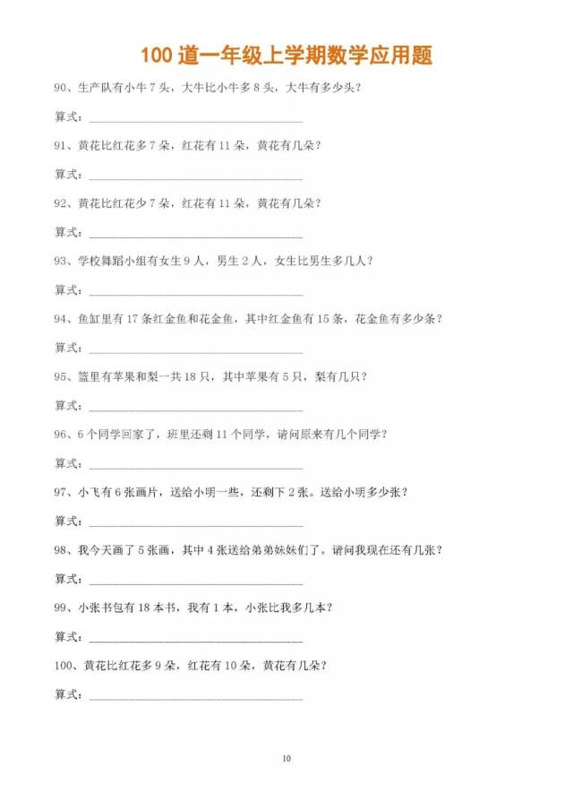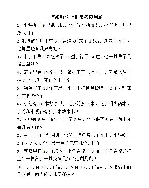 100道一年级上册数学应用题(精心整理),