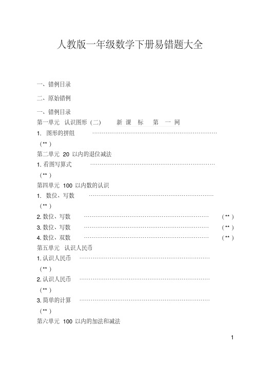 小学一年级数学下册易错题大汇总(填空、