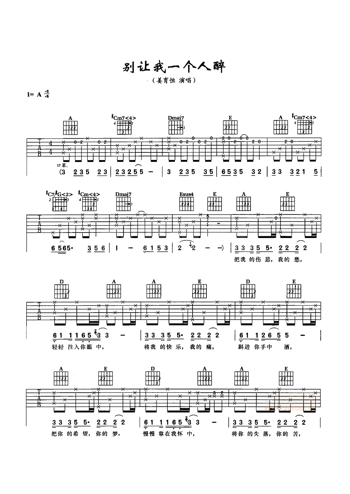 别让我一个人醉A调六线吉他谱-虫虫吉他谱