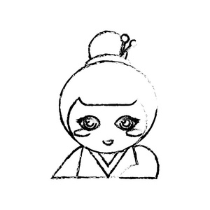 在写实风格的传统日本娃娃。贴纸,设计元素