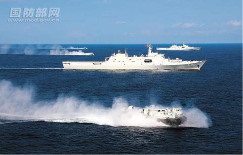登陆舰与气垫登陆艇组成编队赴某海域实战