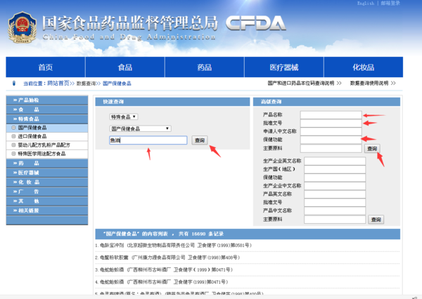 关于食品保健品查询