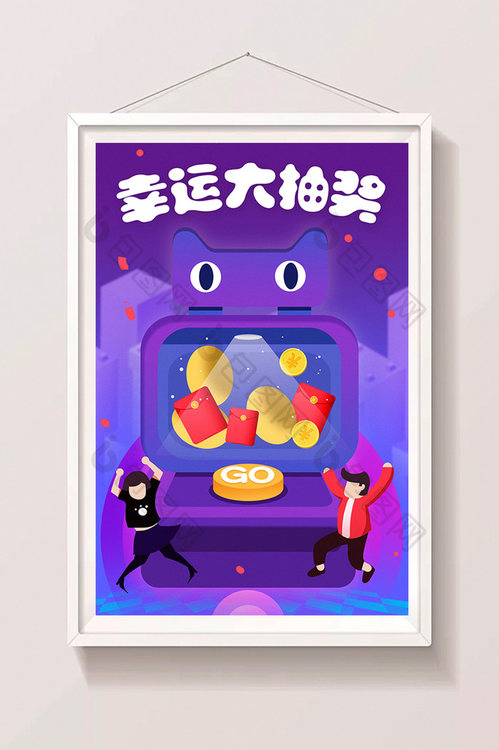 卡通天猫专场幸运大抽奖红包礼券海报插画