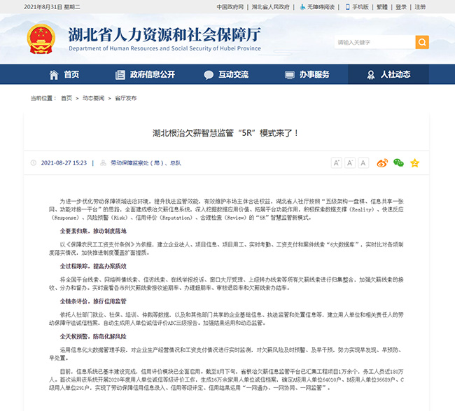 湖北根治欠薪智慧监管\"5R\"模式来了!