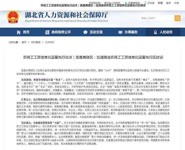 湖北宜昌夷陵区:加速推进农民工工资信息