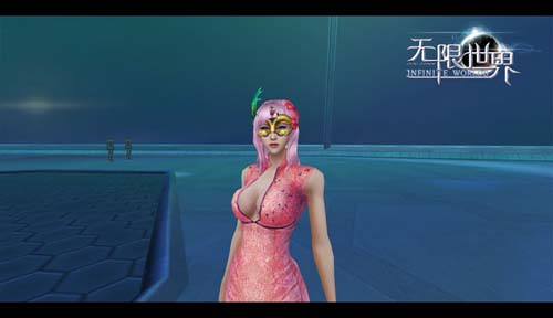 戴着黑色兔耳朵面具的金发女郎抓着头发