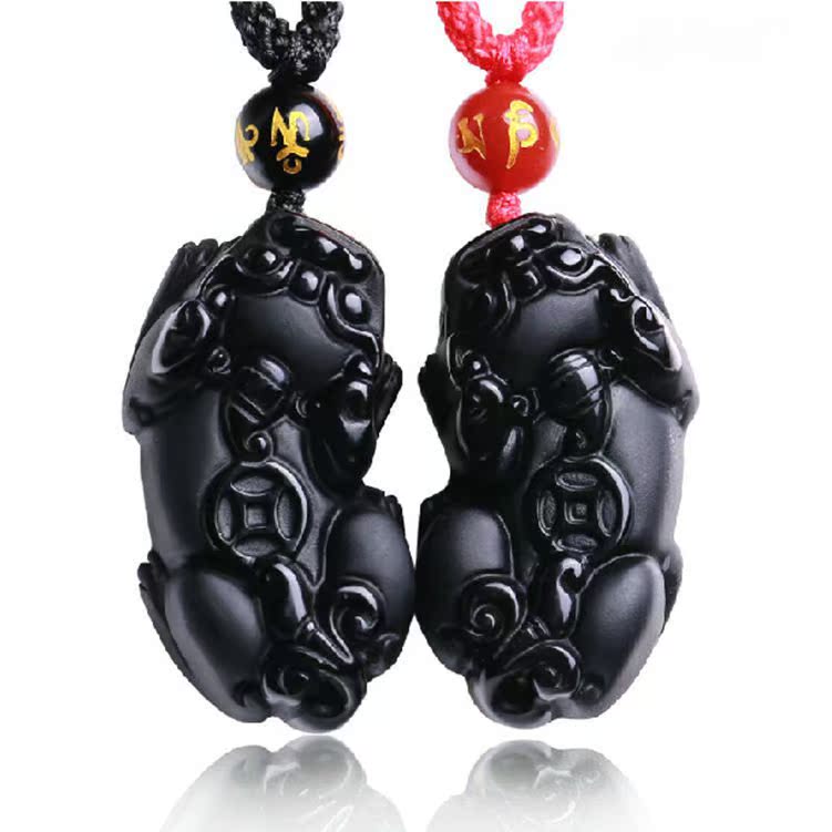 天然水晶磨砂乌金黑曜石貔貅吊坠男女款