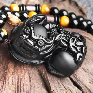 开光乌金黑曜石貔貅吊坠男士项链天然