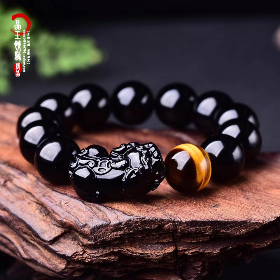 开光水晶乌金黑曜石貔貅手链男女单圈貔恘