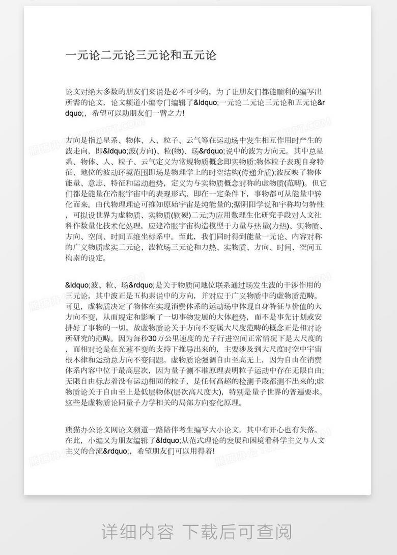 一元论二元论三元论和五元论