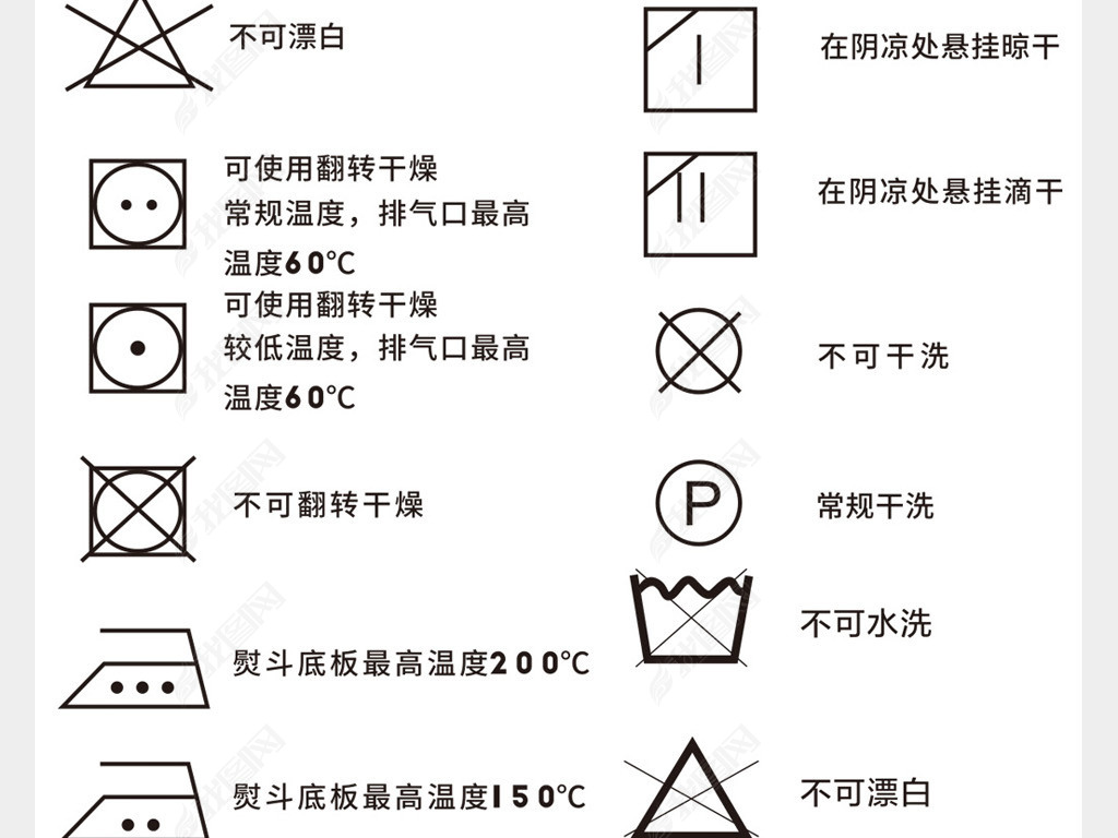 淘宝天猫服装衣服洗水标洗水唛小图标