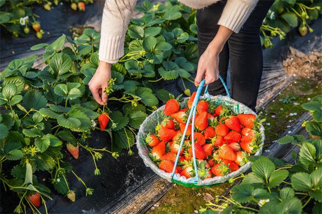 寒冬,在北京大兴小范有机草莓采摘园里,