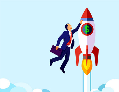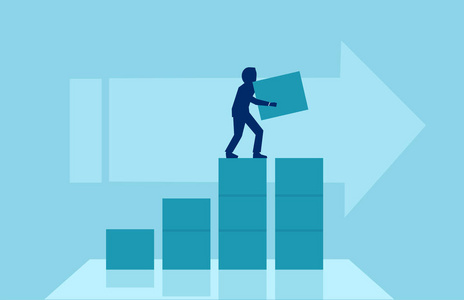 一个商人爬上成功阶梯的矢量, 随着时间的推移提高技能。企业旅程概念的成长与自我实现的路径