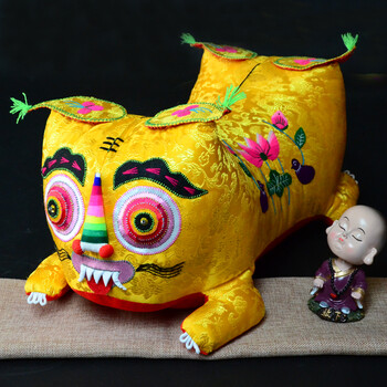 布老虎民间大号老虎枕头宝宝手工玩具满月