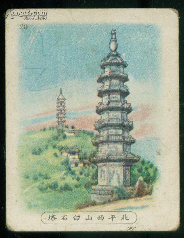 民国香烟画片一枚:北平西山白石塔( 尺寸: