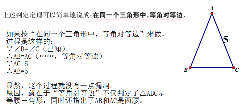 角相等那么这两个角所对的边也相等简写成等角对等边