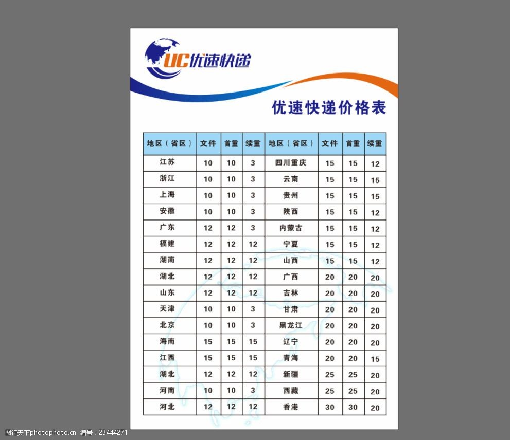 快递价格表图片