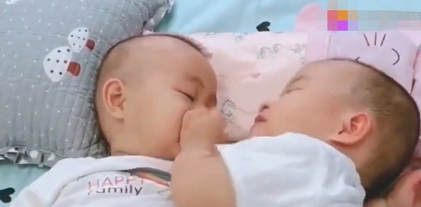 双胞胎宝宝共喝一瓶奶,哥哥抱着啃奶瓶找