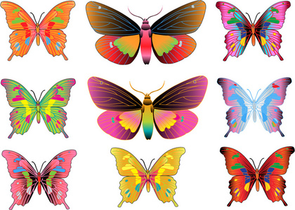 复古五彩蝴蝶矢量图片(图片ID:120257)_-昆虫世界-矢量素材