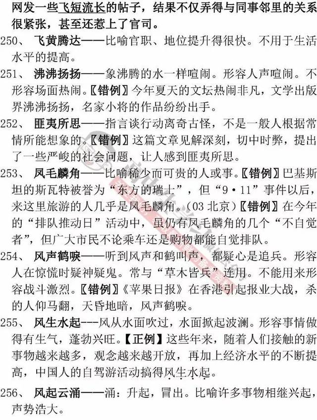 最新版高中常考成语积累+高考真题示例