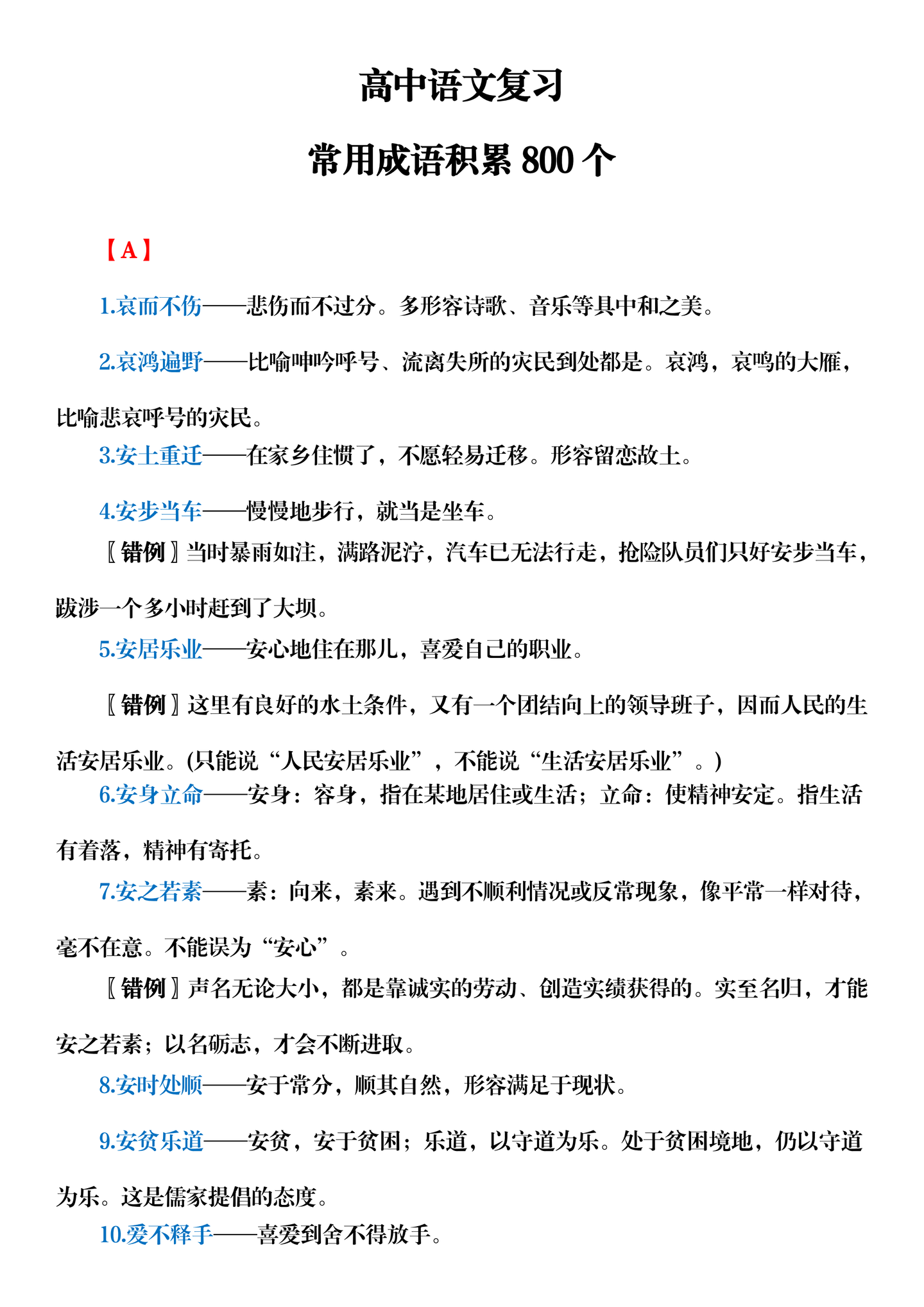 高中常用成语积累800个