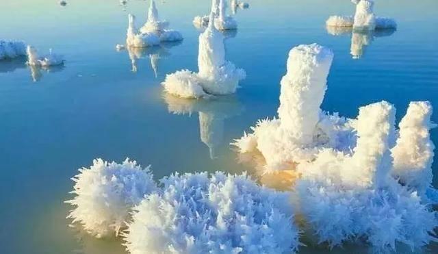 新疆盐湖“开花”:洁白的盐花安静立于湖面,实在是太漂亮了!
