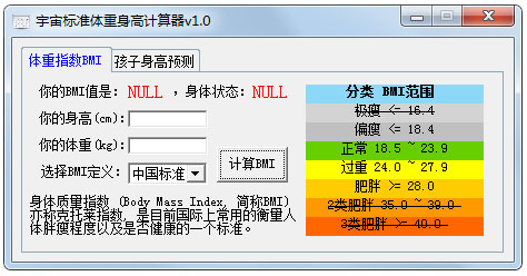 宇宙标准体重身高计算器 V1.0 绿色版