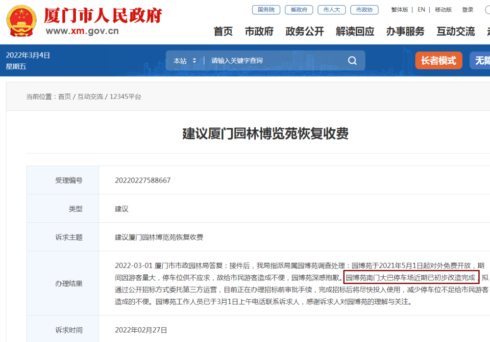 怨气,一位市民建议厦门园林博览苑恢复收费