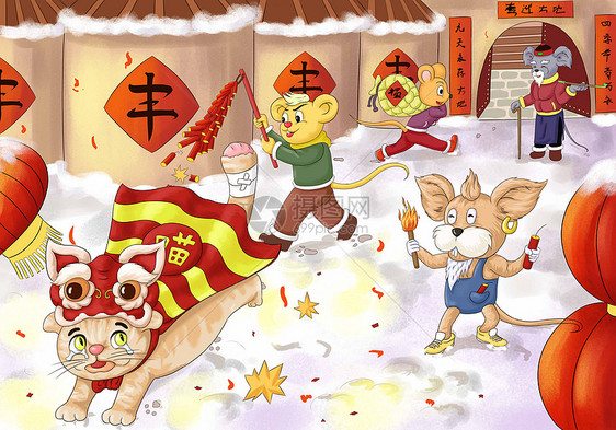 放鞭炮插画-放鞭炮卡通-放鞭炮手绘图片下载
