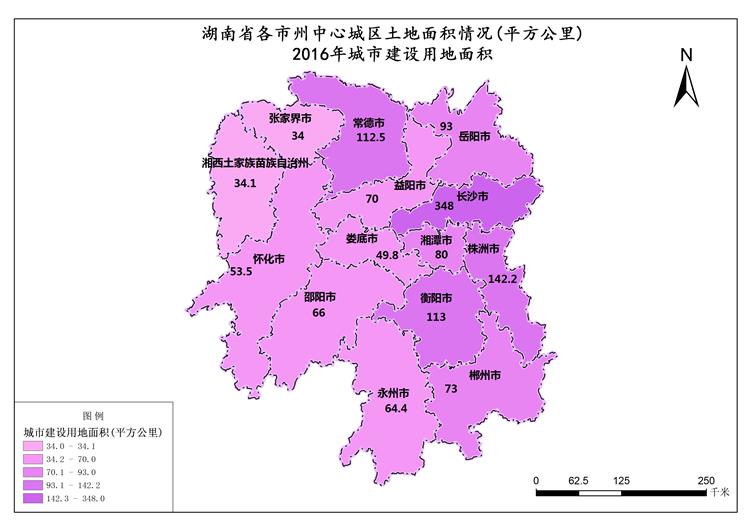 湖南省2016年城市建设用地面积