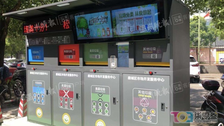 7月31日,4台智能分类垃圾收集箱在鹿城区松台农贸市场正式投入使用。据悉,这是鹿城区市场监管局继去年在该市场率先引入全省首台农贸市场有机垃圾资源化处理设备后,再次率全省之先在该市场启用智能分类垃圾收集箱,将农贸市场垃圾分类与有机垃圾资源化处理相结合。该市场相关工作人员介绍,4台智能分类垃圾收集箱分别设置在该市场的3个出入口,具有刷卡投放、监控联网、满载预警、防水防火防盗、箱体温度检测和自动通风等功能。其中1台还具有人脸识别功能,以及两块32寸高清显示屏,播放垃圾分类相关宣传内容。市民可通过“爱分类”app、“爱分类”公众微信号、“爱分类”微信小程序,以及智能分类垃圾收集箱自带的人脸识别功能等四种方式实现垃圾分类“绿色账户”建档,建档后再按照“可回收垃圾”“易腐垃圾”“有害垃圾”“其他垃圾”四种类型,向智能分类垃圾收集箱投放垃圾。另外,该市场的370多户经营户将凭借经营户卡使用该设备投放垃圾。具有人脸识别功能的智能分类垃圾收集箱设置在该市场的西侧出入口处,工作人员在此处向围观市民演示了如何正确投放垃圾的过程。工作人员介绍,投放前,市民需要在该智能分类垃圾收集箱的触摸屏上选择要投放的垃圾种类,然后打开“爱分类”APP、“爱分类”微信公众号或“爱分类”微信小程序获取一个二维码进行扫码启用,或者直接通过该智能分类垃圾收集箱的刷脸功能来启用,对应的垃圾投放口会自动打开,扔完垃圾后投放口自动关闭。工作人员介绍,由于智能分类垃圾收集箱在非投放状态下是独立的密闭空间,因此可以减少臭味外溢、保持视觉美观。箱体内部装有臭氧发生器,海鲜、活鱼、禽类等废弃内脏等市场垃圾经过长时间堆积会产生异味,臭氧则有很强的氧化分解能力,能有效消除箱体内各种异味。每个投放口一侧设有预警指示灯,对应不同类型的垃圾桶。当某个桶的垃圾桶满载时警示灯就会亮起,智能分类垃圾收集箱的自带系统可通过手机App推送或短信发送提示,直连市场清扫员前来收集运输,其中搜集的“易腐垃圾”将运送到该市场的农贸市场有机垃圾资源化处理设备进行处理,“变身”为有机肥料。鹿城区市场监管局工作人员表示,为进一步做好垃圾分类工作,在配备智能分类垃圾收集箱这一硬件设备的基础上,该局还在松台农贸市场施行《松台农贸市场垃圾分类实施方案》、《松台农贸市场垃圾分类管理办法》等一系列制度,将硬件设施建设与制度化考核、奖励办法等软件设施建设形成配套,使垃圾分类工作监管常态化、规范化。另外,该局今年还计划在辖区内的另外4家农贸市场设置智能分类垃圾收集箱和农贸市场有机垃圾资源化处理设备。