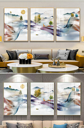 客厅沙发背景墙三联画有框挂画现代卧室壁画风景山水画一件代发