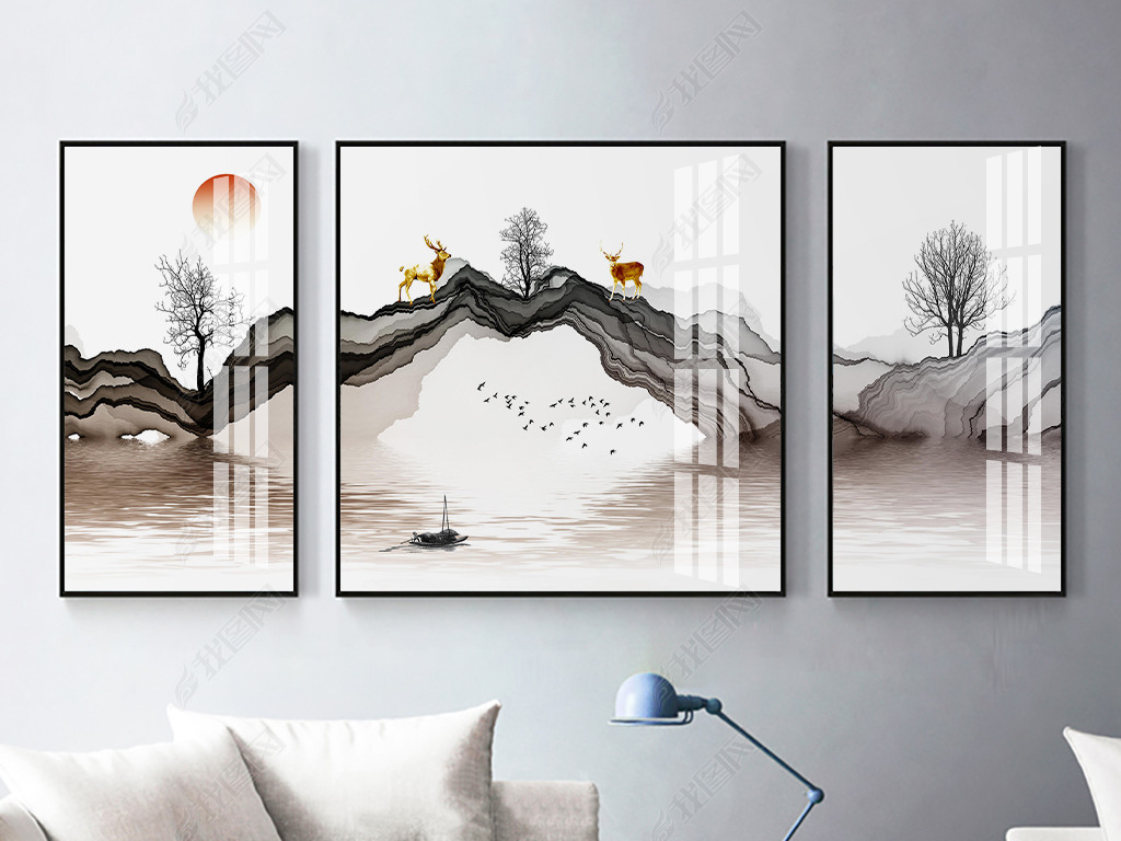 水墨背景墙装饰三联画素材设计图免费下载_2362像素_psd格式_编号27616807