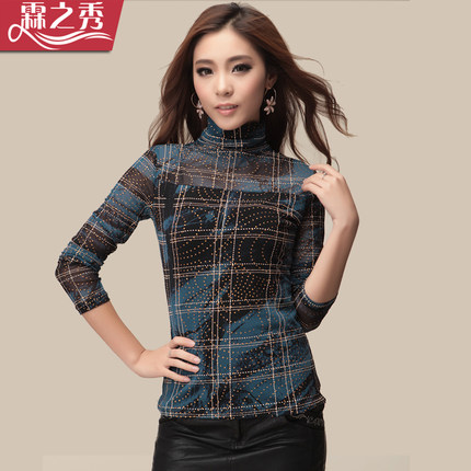 霖之秀秋装新款秋冬女装高领网纱蕾丝打底