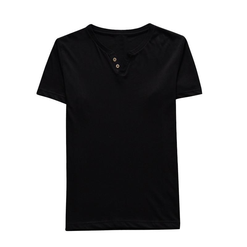 【WOLFLAG系列】WOLFLAG夏季新款纯色V领短袖t恤男韩版修身打底衫男体恤KA05-C 黑色XXXL图片,高清实拍图-苏宁易购