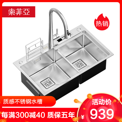 欧贝尔卫浴 不锈钢加厚304双槽水槽套餐 双