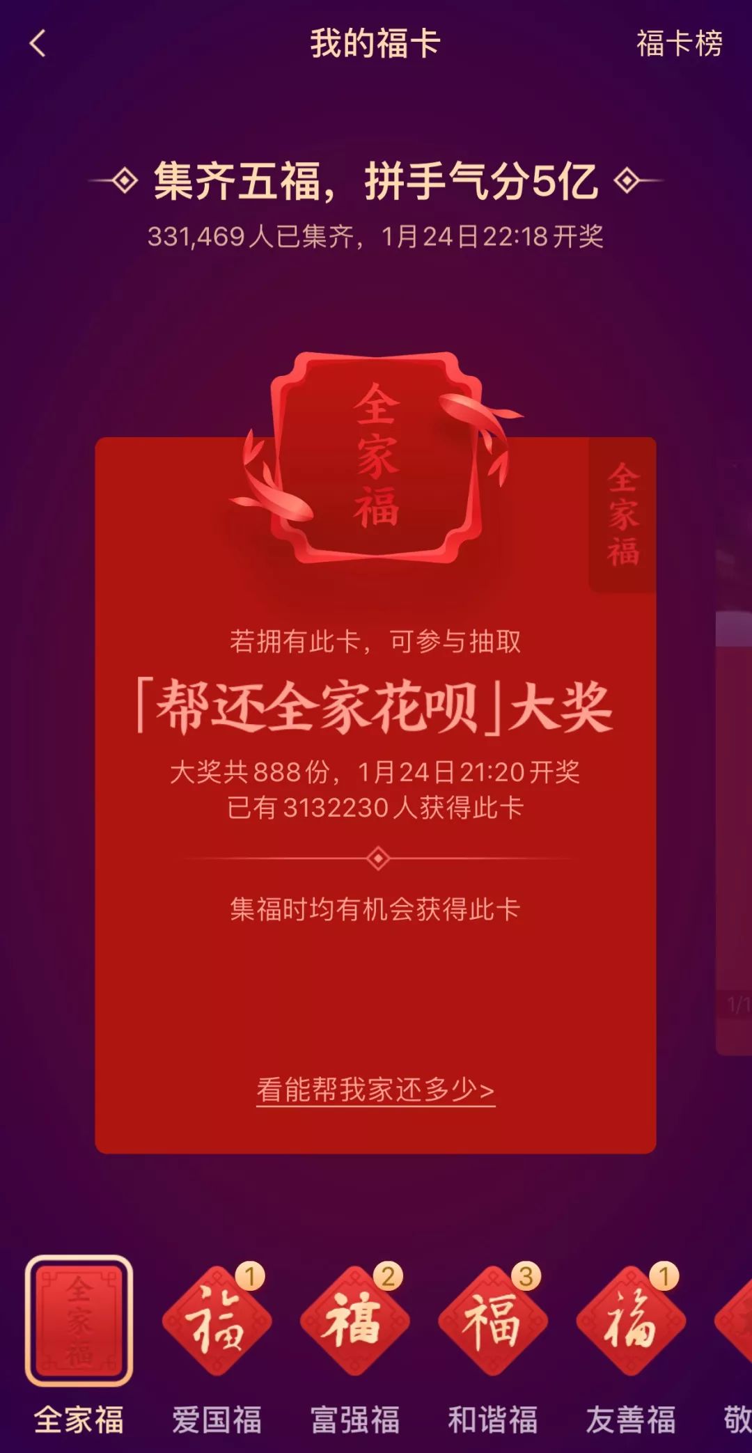 2018支付宝五福能分多少钱_支付宝集五福活动