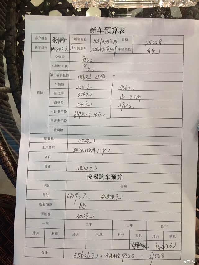 【图】1.3手精,4s给的贷款购车预算表!各位给个