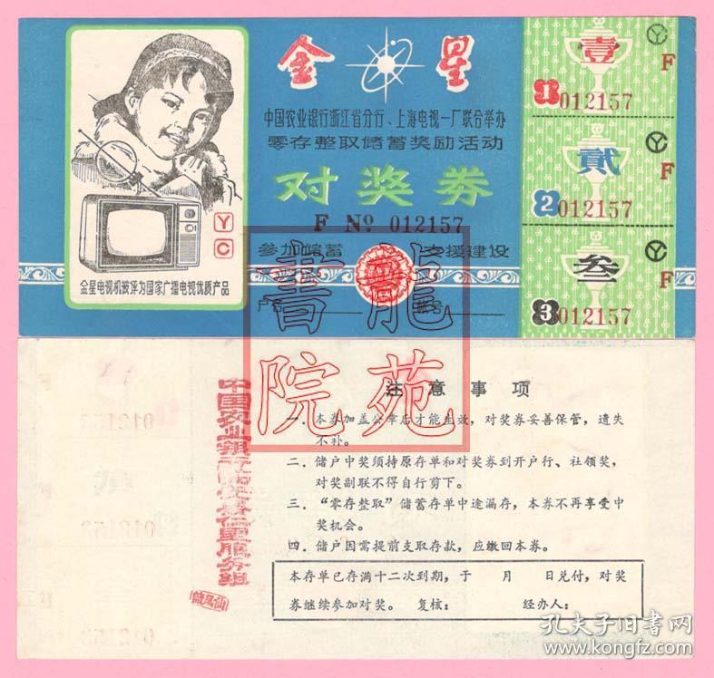 存单对奖券·农业银行浙江省分行临安县仁里服