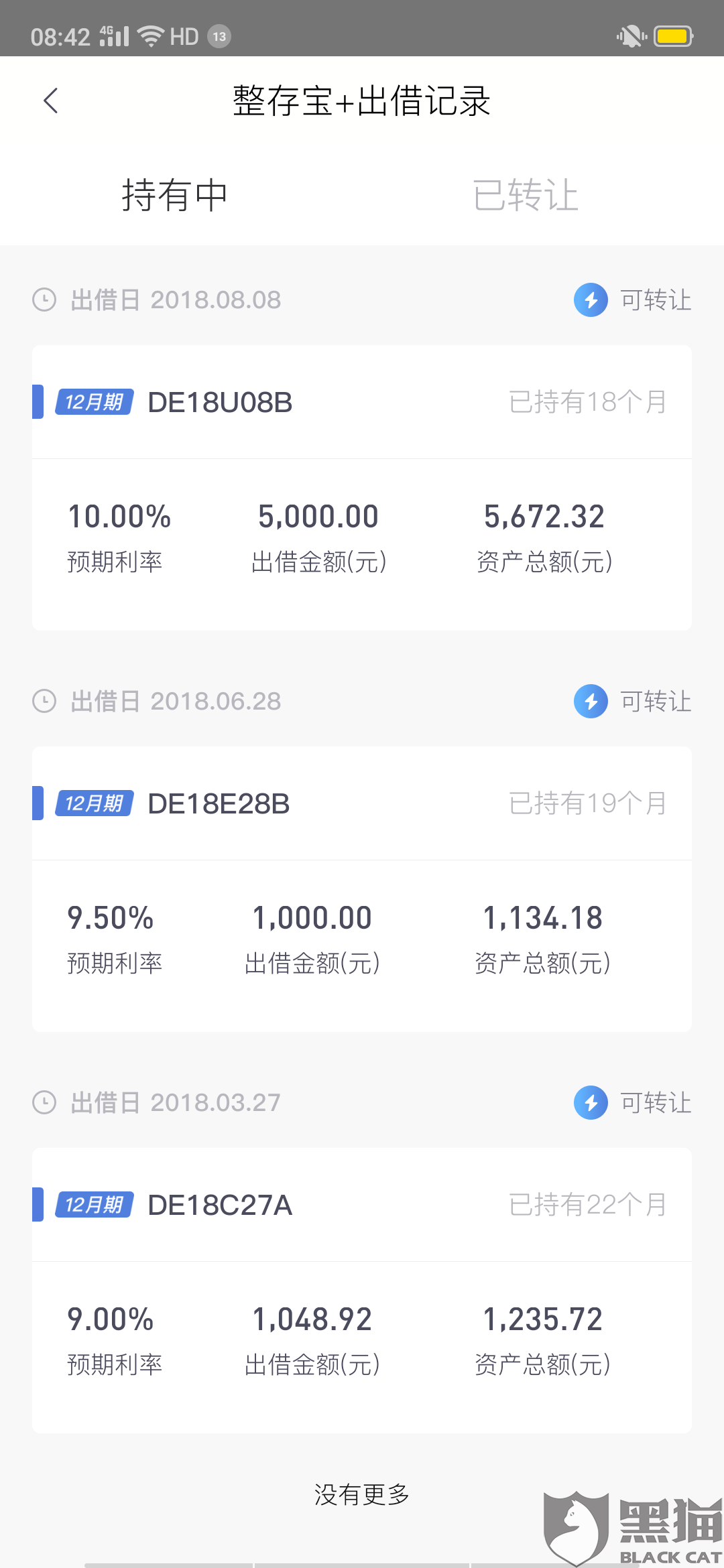 黑猫投诉:网贷平台爱钱进爱盈宝到期未按时成